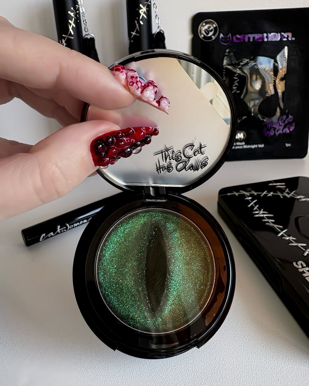 آنچه این پک را واقعا متمایز میکند، طراحی تممحور و دقت در جزئیات است. جعبه اصلی اغلب با المانهای گربهای، پنجه و ماسک تزئین شده است. هر محصول هم بستهبندی منحصربهفرد دارد؛ مثلا ماسک چشم با طرح ماسک کتوومن، خط چشم با الهام از نامهای گربهای و هایلایتر با درخشش جواهری که حس دزدی از گنجینه را القا میکند.