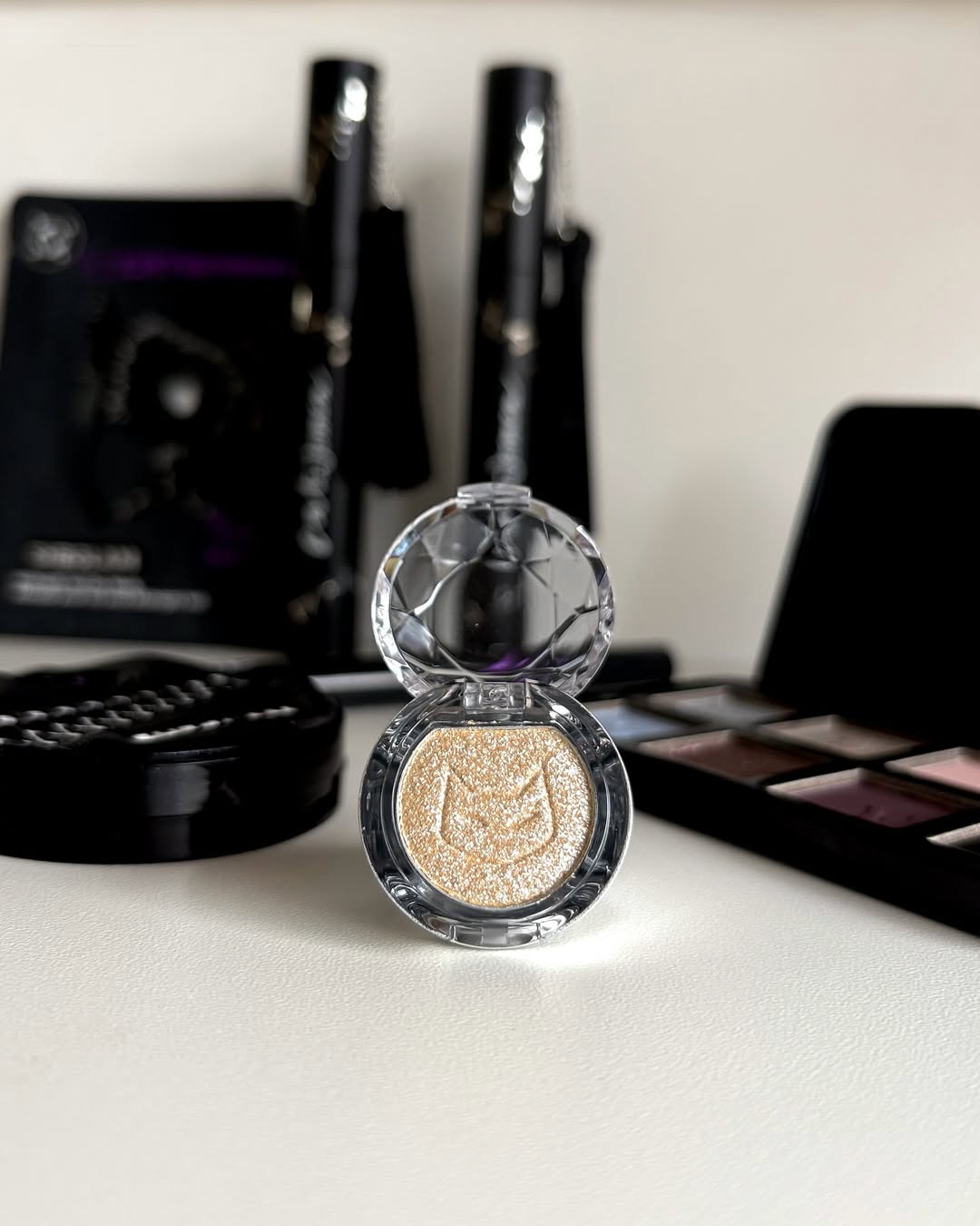 - پالت سایه چشم (شش رنگ): طیفهای بنفش، نقرهای و مشکی برای آرایش چشم دودی و جذاب. این پالت شامل رنگهای مات برای ایجاد عمق در چین پلک و رنگهای براق برای درخشش در مرکز پلک و گوشه داخلی چشم است؛ ترکیب ایدهآلی برای اسموکی کلاسیک با حس گربهای.